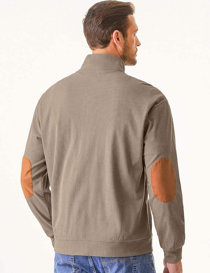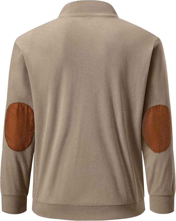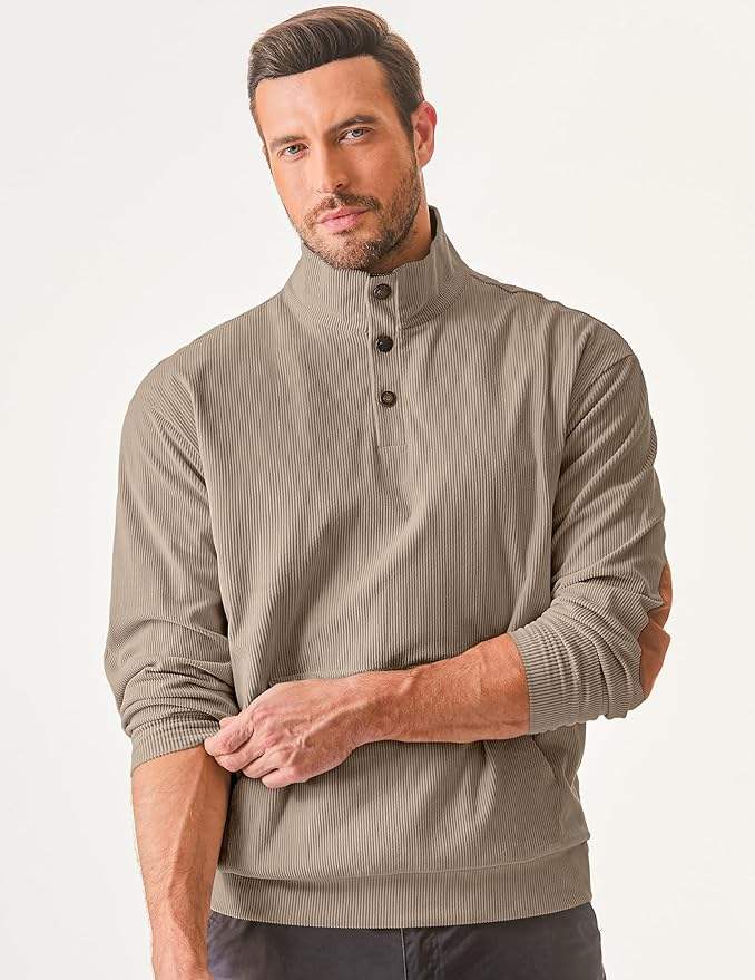 Men's Casual Long Sleeve Corduroy Pullover Hoodie Stand Collar with Button Embroidered Design and Pockets for Autumn
