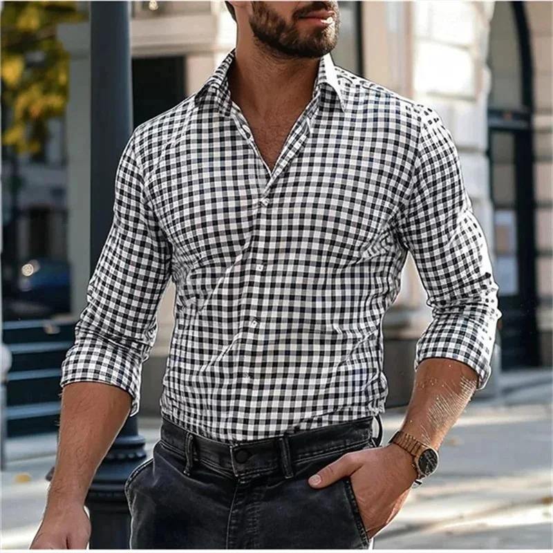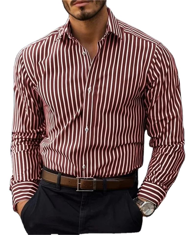 Men's Casual Long Sleeve for Polo Shirt in Black Red Blue Stripes for Daily Wear Button Front Fashion Tops