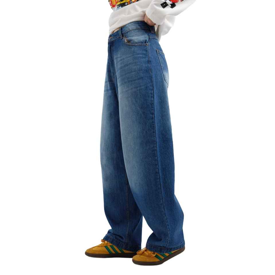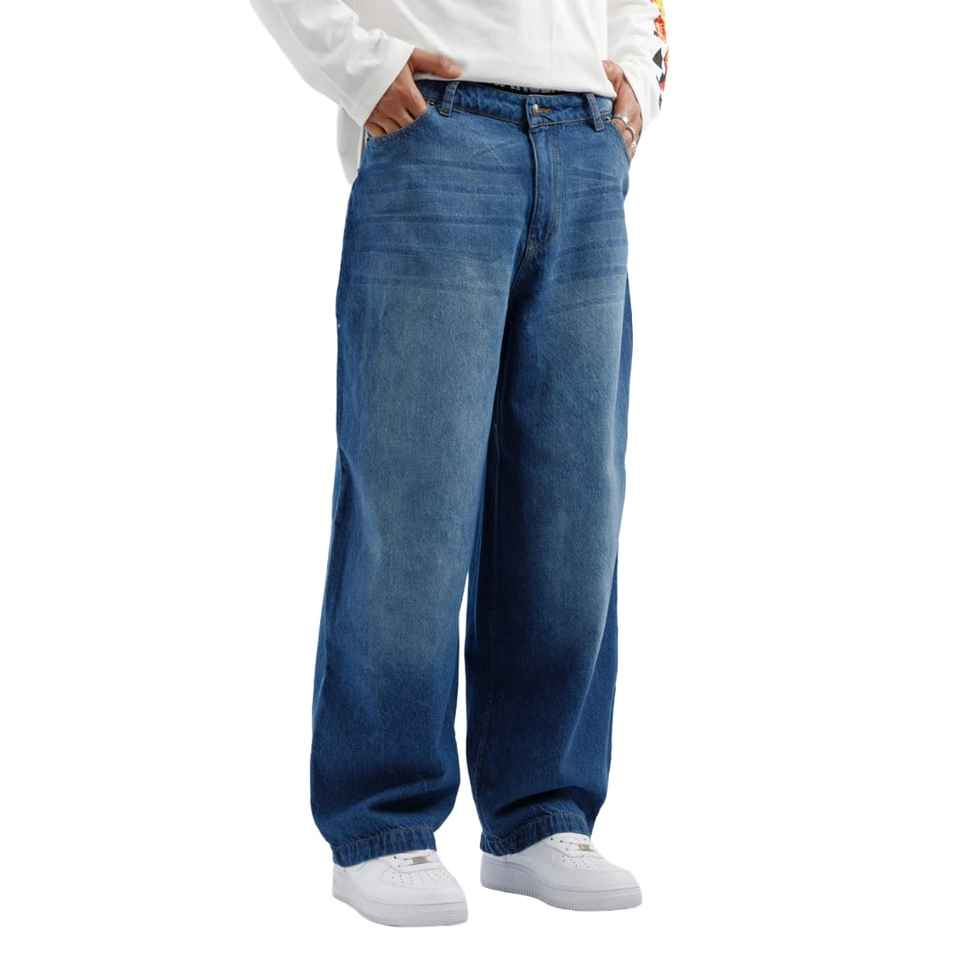 Men's Casual Mid Waist Baggy Denim Jeans Dark Blue Flared Wide Leg Pants Breathable Plain Dyed Men Women Jeans Manufacturer