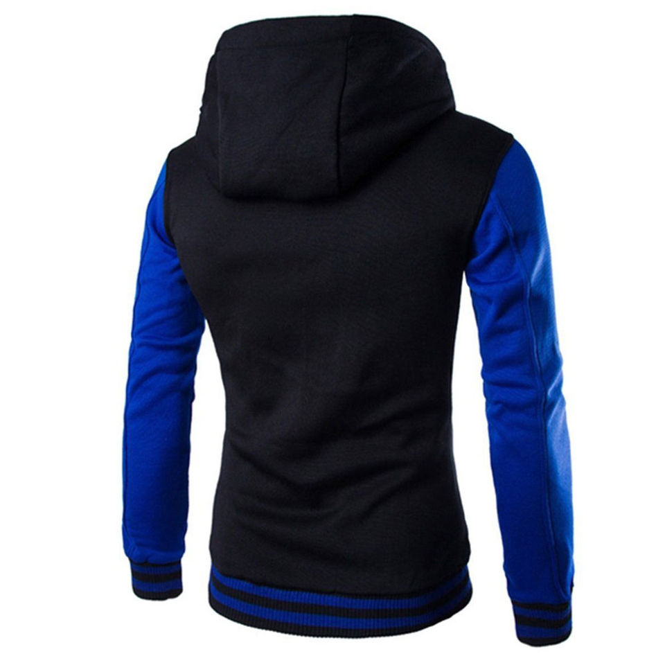 Men's Casual Pullover Hoodie Winter 100% Cotton Thermal Tech Fleece Royal Blue Black Two Tone
