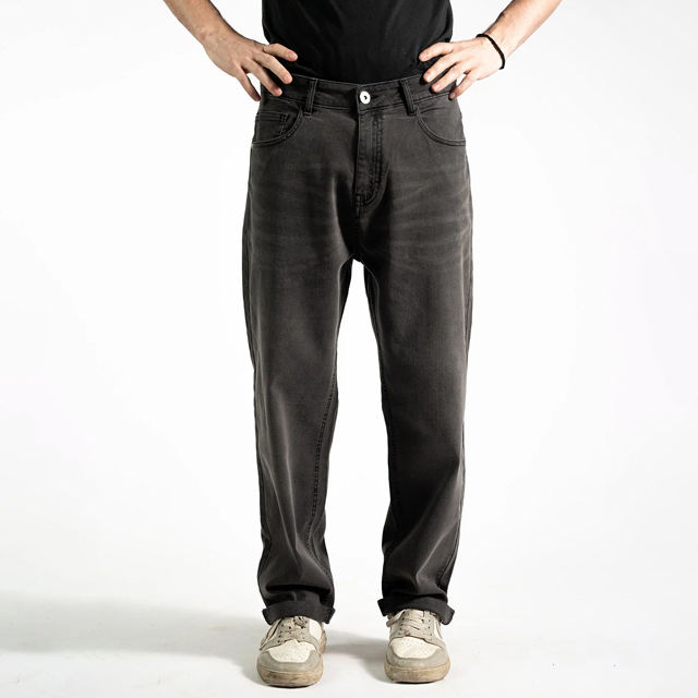 Men's Casual Relaxed Straight Leg Breathable Durable Stretch Denim Jeans Mid Rise Waist OEM Private Label Medium Wash