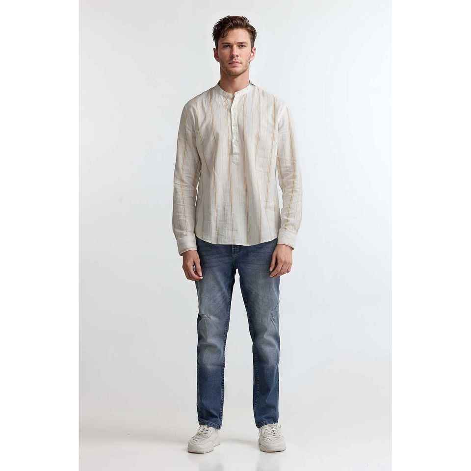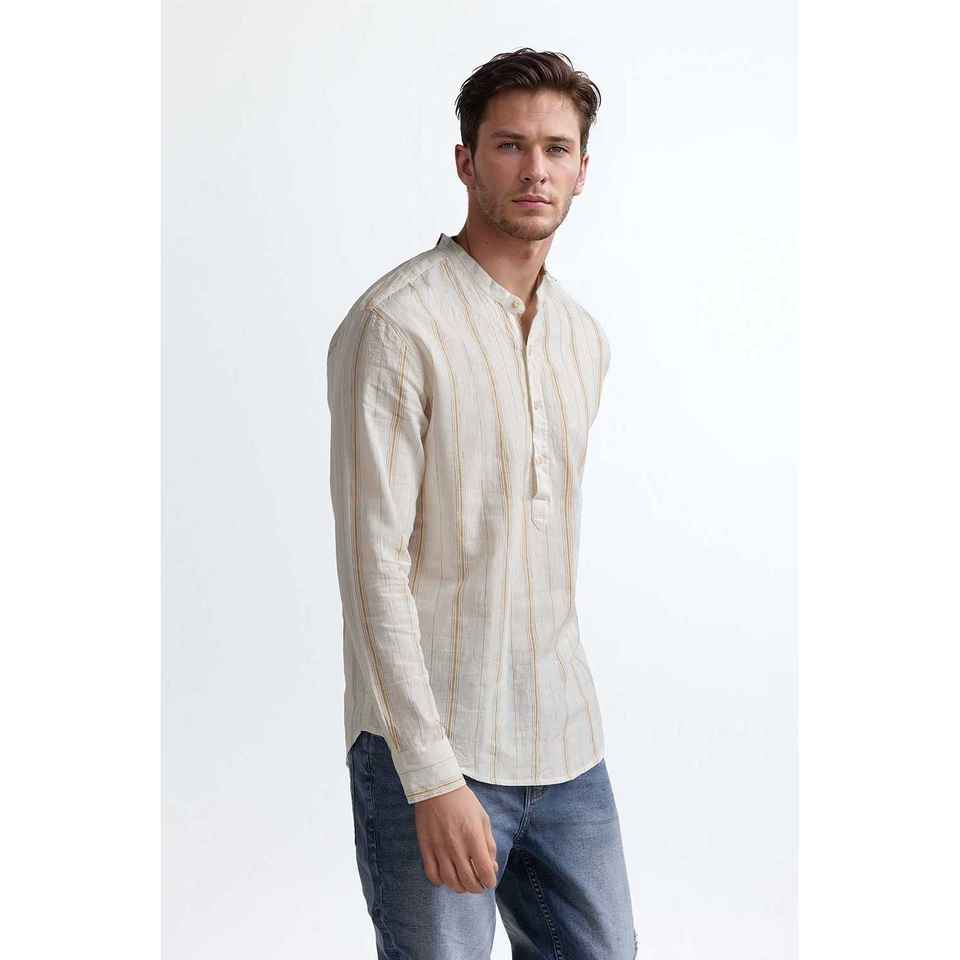 Men's Casual Shirt White Orange Stripe Slim Fit 100% Cotton Poplin Breathable Yarn Dyed Sizes 3XL and 2XL Available