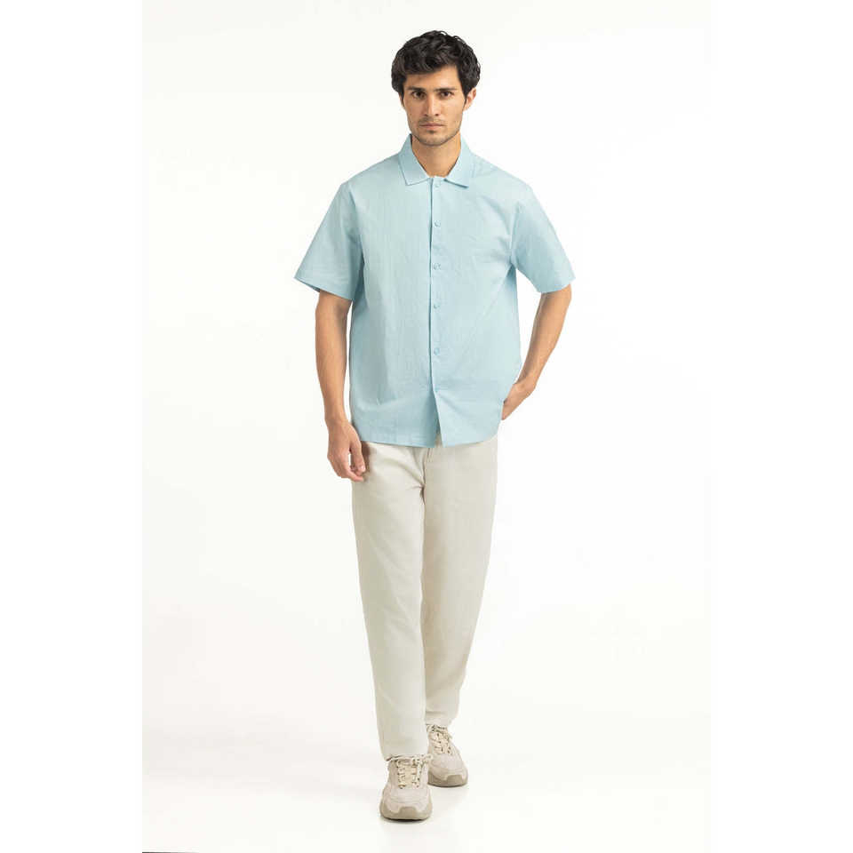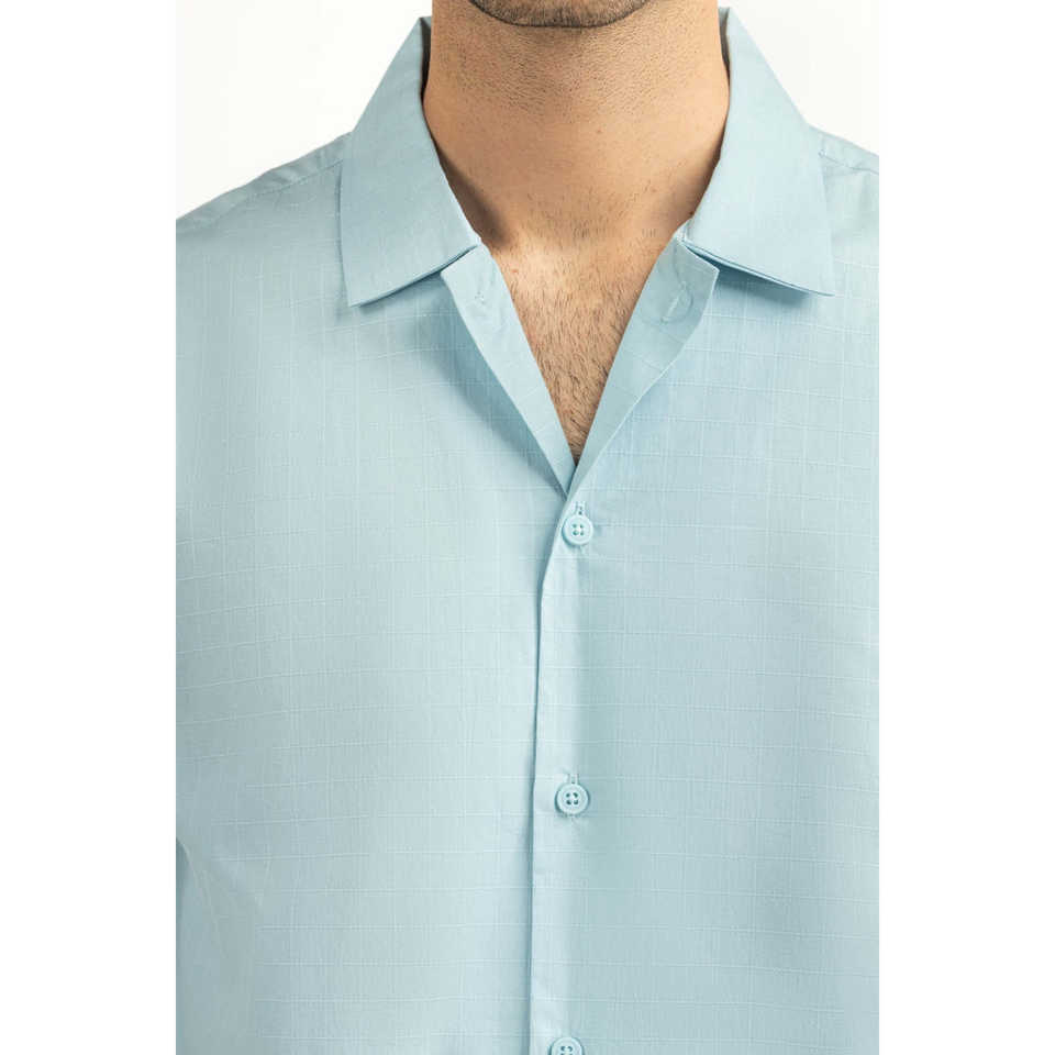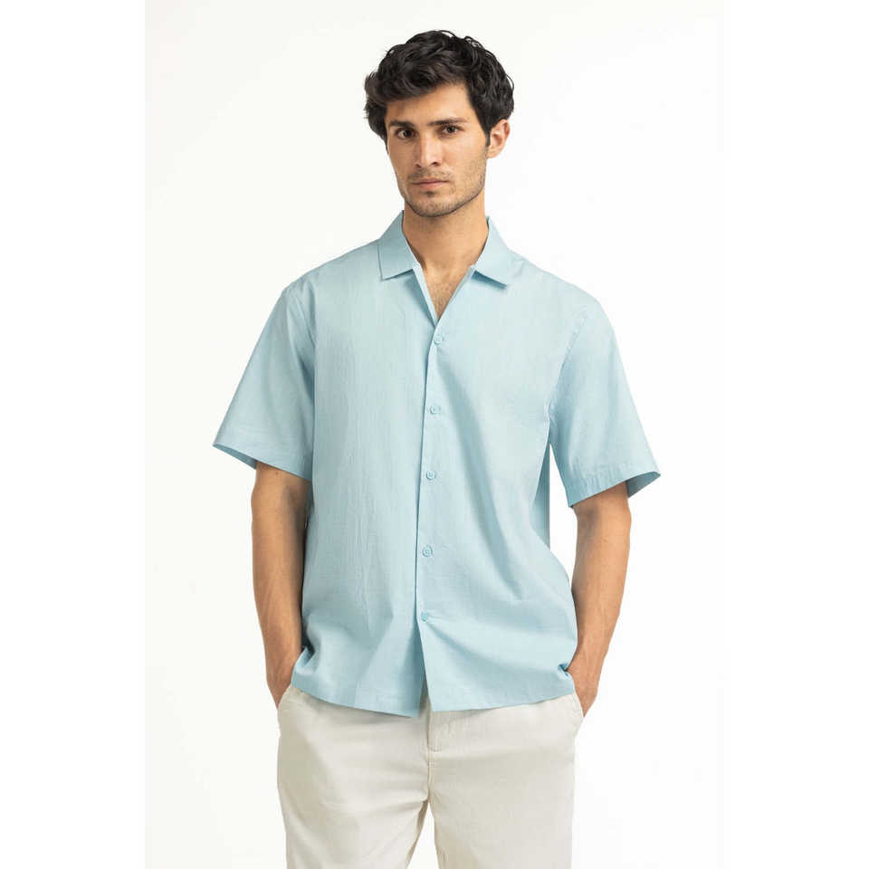 Men's Casual Shirts Double Breasted Light BLUE with Satin Poplin Fabric 100% Cotton Breathable Regular Fit Summer ODM Supply