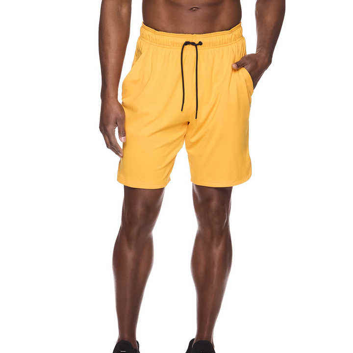 Men's Casual Solid Pattern Fitness Gym Shorts Sale Lightweight Breathable Polyester Mesh Mid Waist Drawstring 7 Inch Zip Pockets