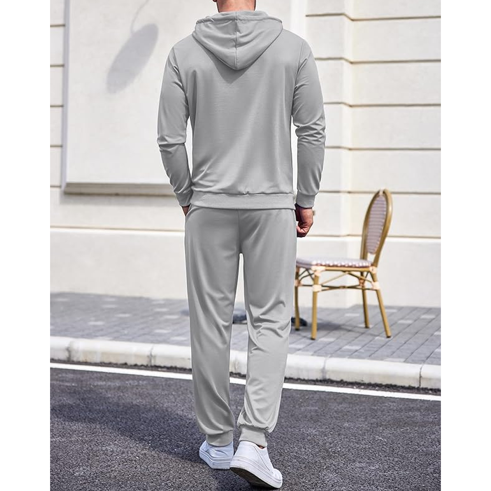 Men's Casual Sports Two-Piece Hooded Athletic Sweatsuit Long Sleeve Jogging Summer Tracksuit Plus Size and Maternity Feature