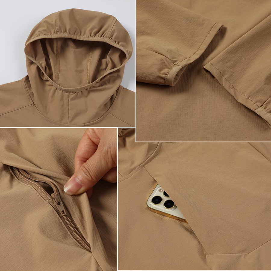 Men's Casual Sportswear Stand Collar Hooded Windbreaker Quick Dry Jacket for Outdoor Hiking Jogging Waterproof Thin Coats