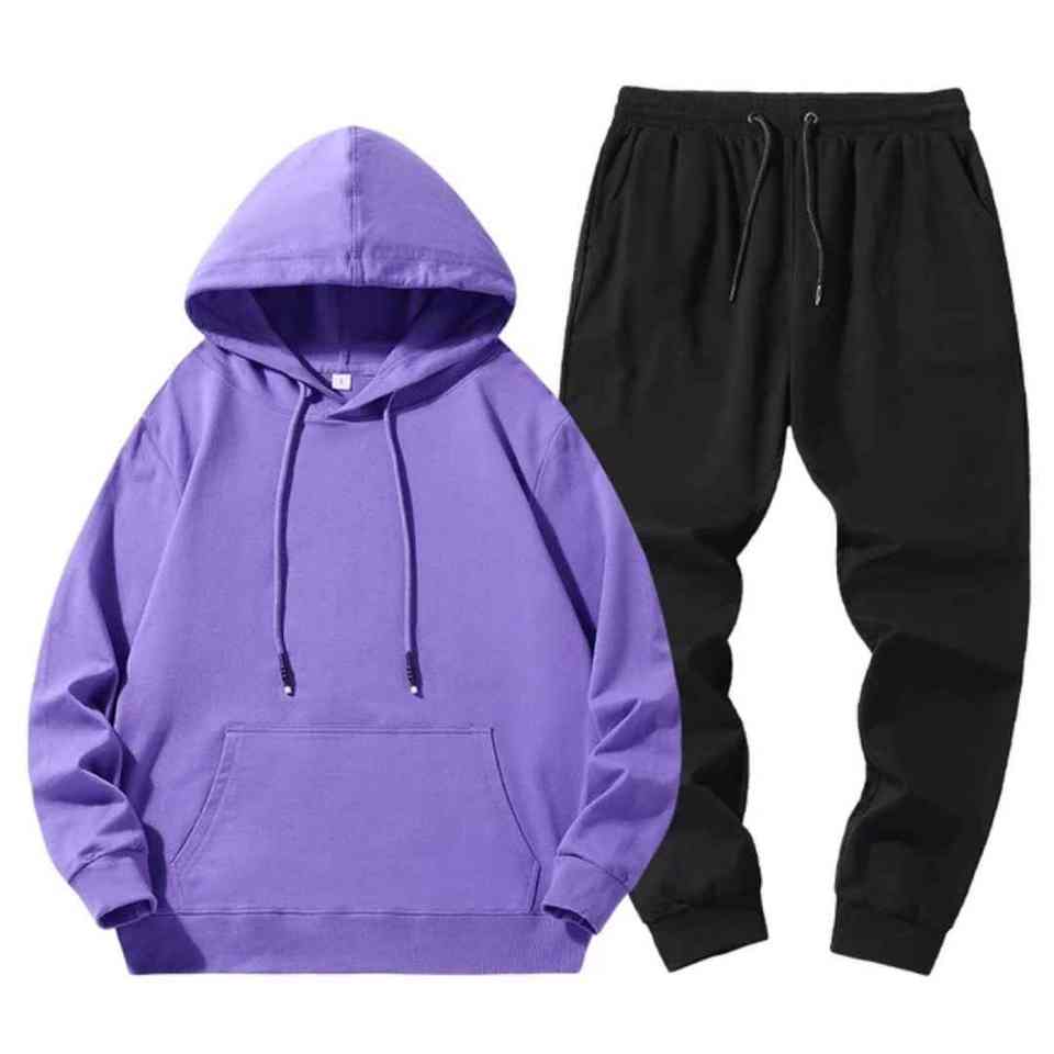 Customized 2 Pieces Workout Sets Basic Blank Sweat Suits Manufacturer Cotton Fleece Hoodies and Jogger Pants Tracksuits for Men