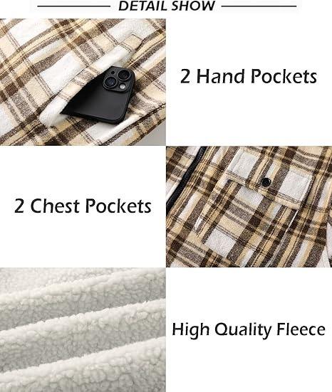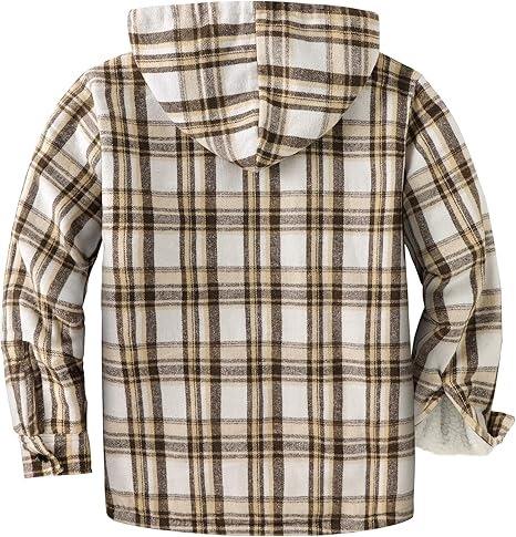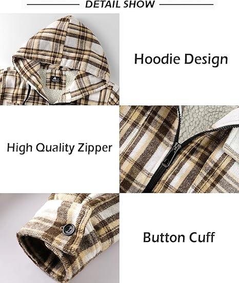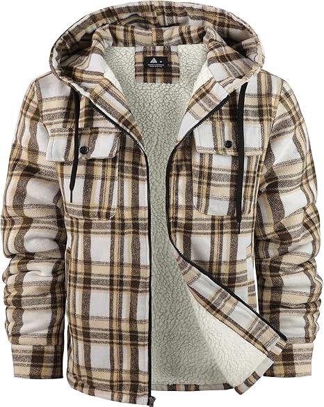 Men's Casual Style 100% Cotton Sherpa Lined Flannel Shirt Jacket Full Zip up Hoodie Winter Outwear Size XL Sale Discount Offer