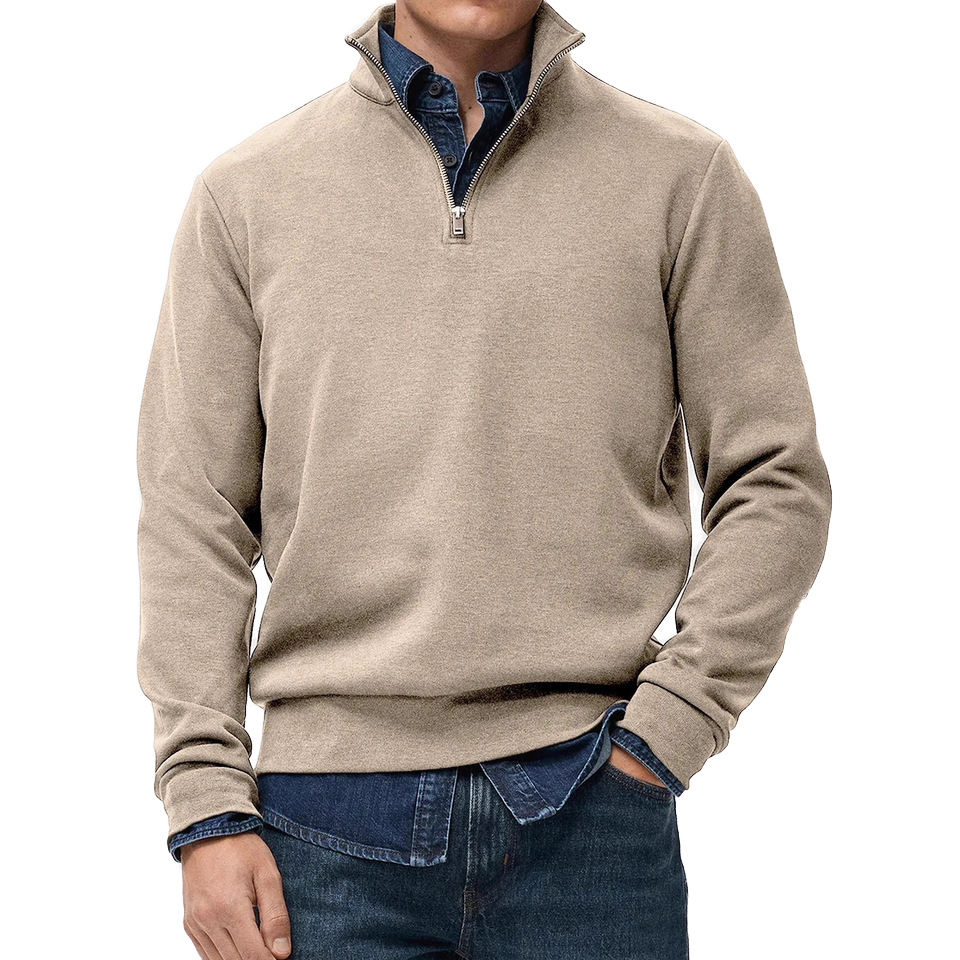 Men's Casual Style Men's Winter 65/35 Cotton & Polyester Fleece Color Blank Half-Zip Stand Collar Sweatshirt