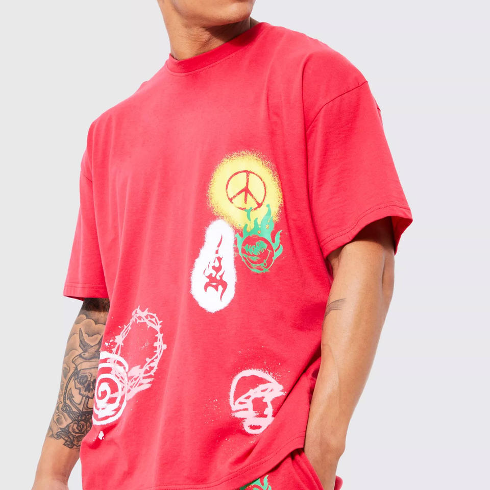Men's Casual Style Summer Clothes 2-Piece Set Short Sleeve Tshirt & Shorts Printed Pattern Breathable Cotton