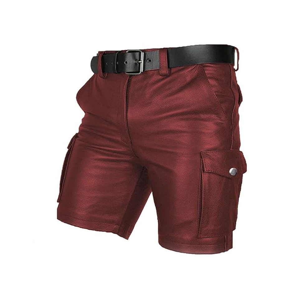 Men's Casual Stylish Leather Shorts Elastic Waist Nonwoven Breathable Quick Dry Worsted Fabric Knee Length Outdoor OEM Service
