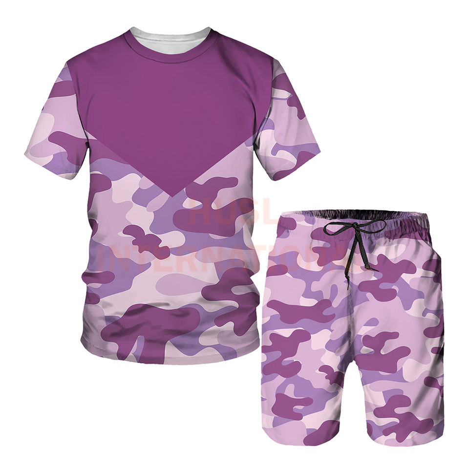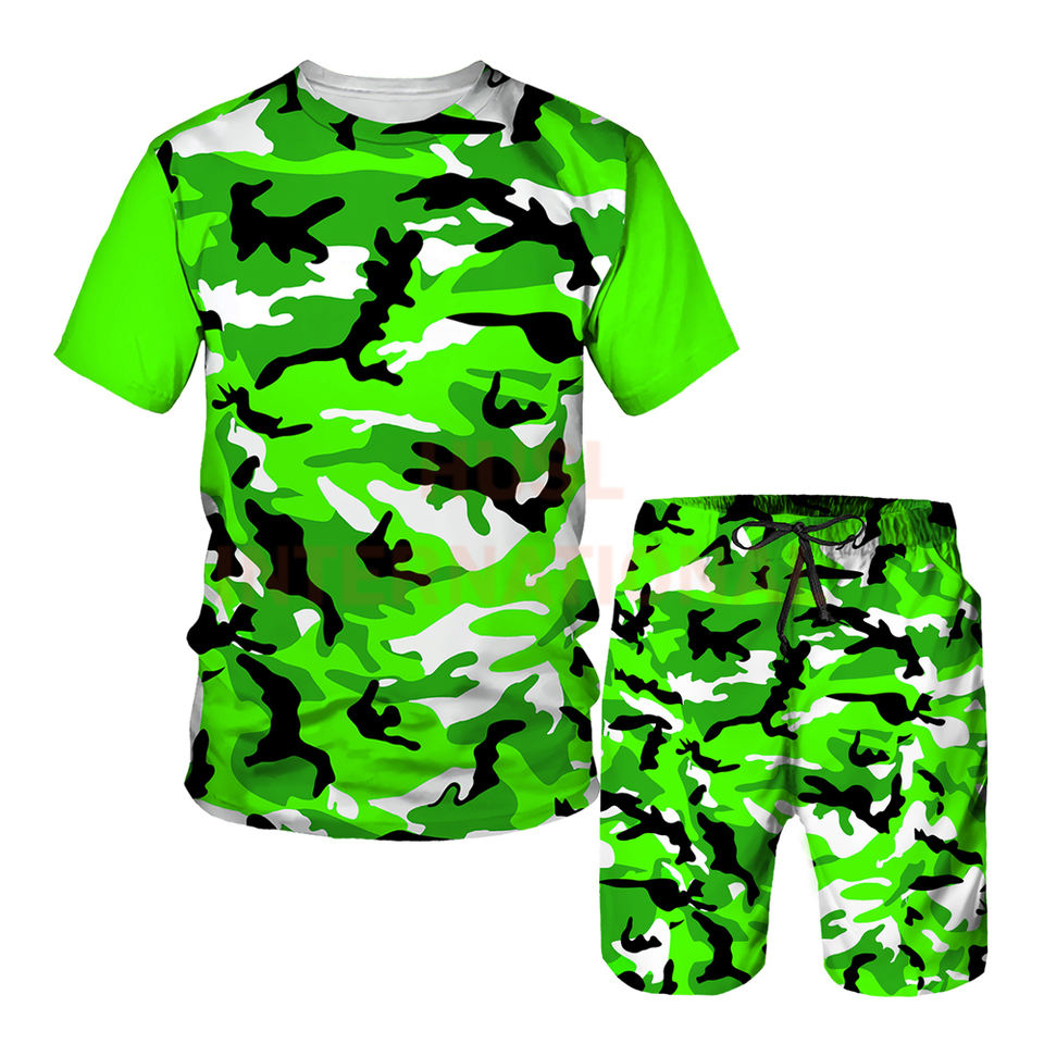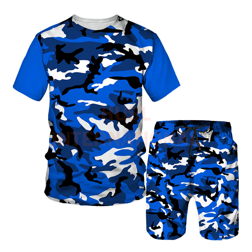 Men's Casual Summer 3D Printed Cotton T-Shirt Set Oversized 2-Piece Tracksuit with Beach Shorts Breathable Knitted Weaving