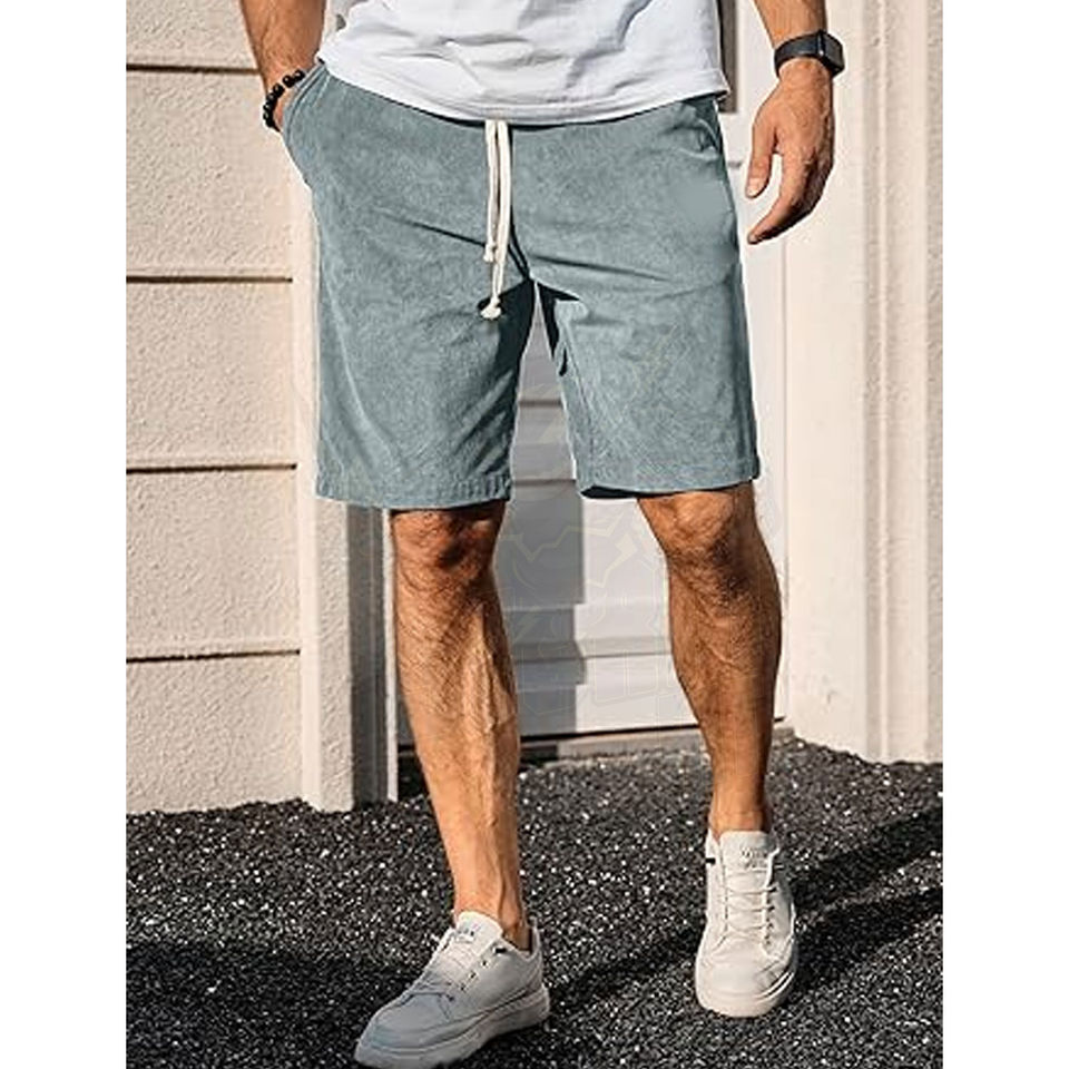Men's Casual Summer Corduroy Shorts with Elastic Waistband & Practical Pockets Solid Pattern Lightweight Feel
