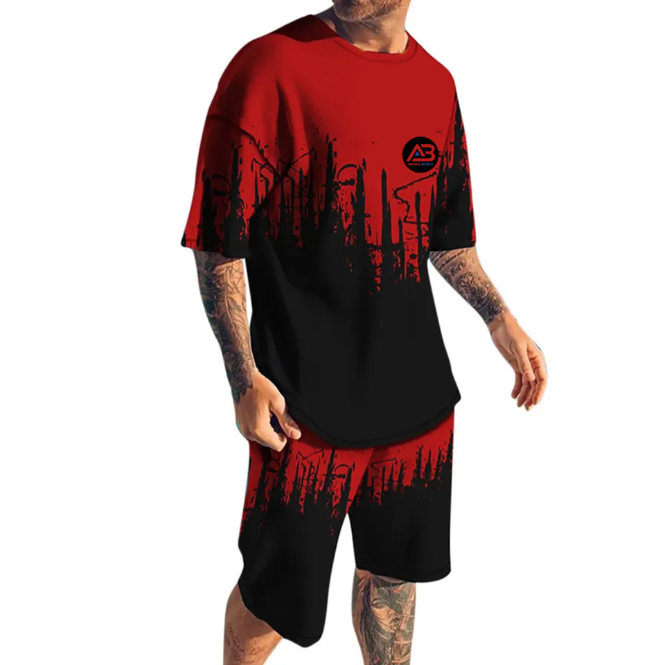 Men's Casual Summer Short Sleeve Quick Dry Polyester/Cotton T-Shirt and Shorts Outfit Solid Color Low MOQ 2 Piece