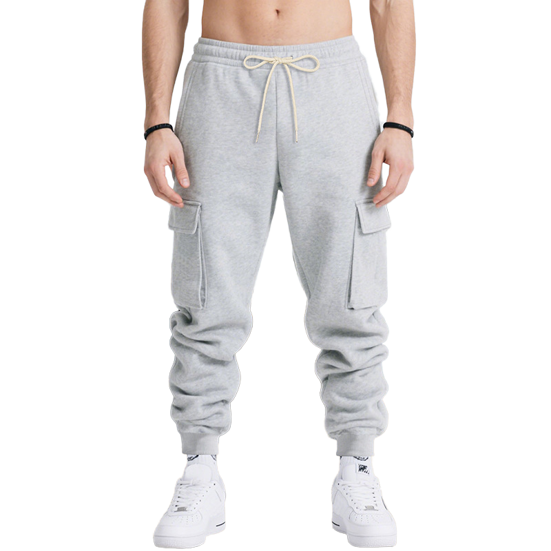Men's Casual Sweatpants Autumn Sports Workwear Elastic Waist Closure Heavyweight Loose Fit Multi-Pocket Flat Front Style