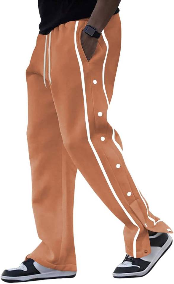 Men's Casual Sweatpants Drawstring Waist Contrast Long Stripe Side Buttons Jogger Pants Loose Fit Lounge with Pockets