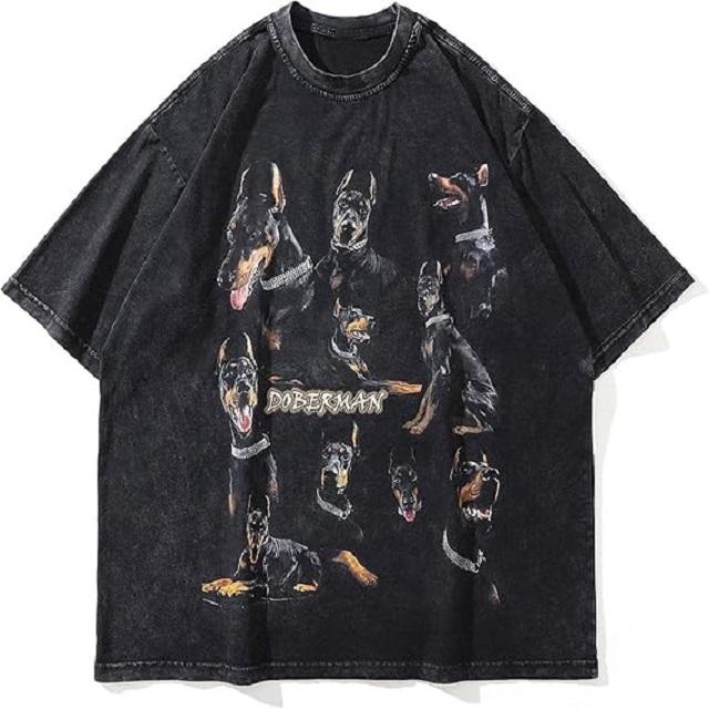Men's Casual Unisex Oversized 100% Cotton Knitted T-Shirt Custom Logo Fully Printed Abstract Design Loose Fit Washed Dog Graphic