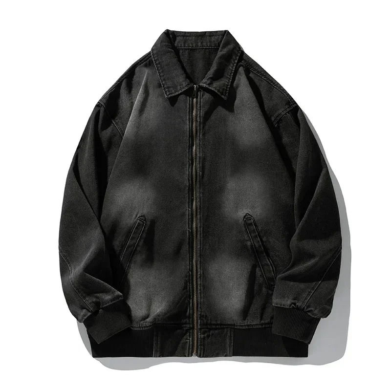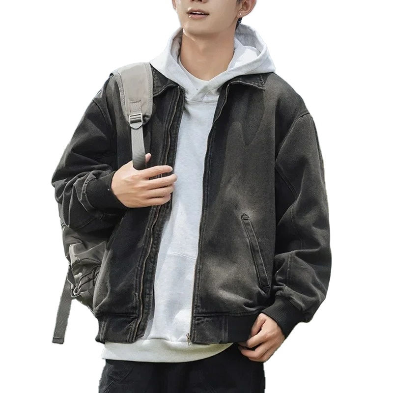 Men's Casual Vintage Streetwear Outerwear Spring Autumn Oversized Washed Denim Jacket with Zipper Turn-Down Collar Jean Coats