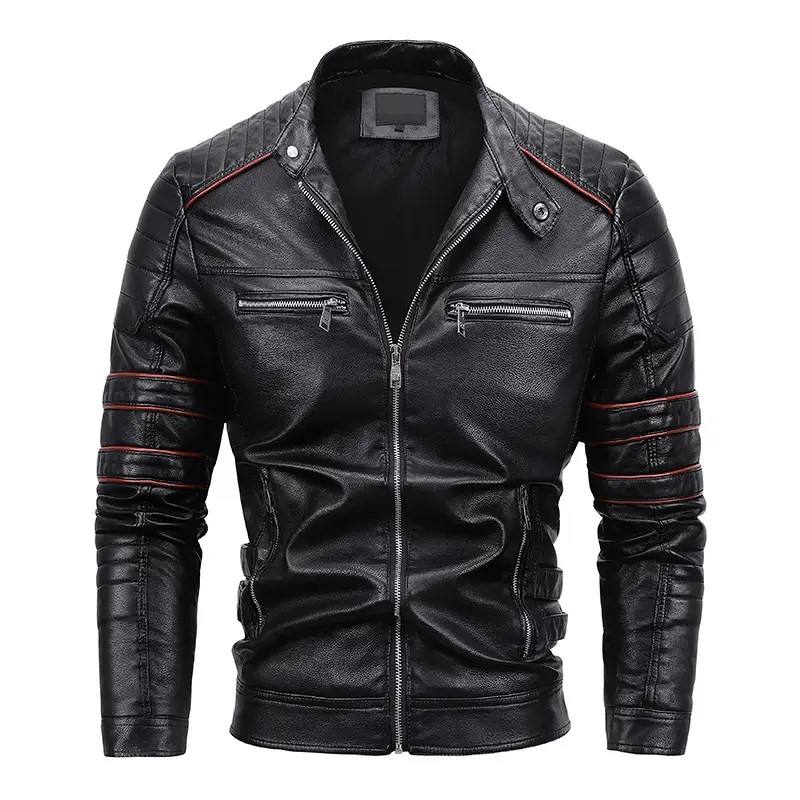 Men's Casual Winter Faux Black Fur Leather Jacket Zipper Pockets Long Sleeves Windproof Motorcycle Sheepskin Clothing Jackets
