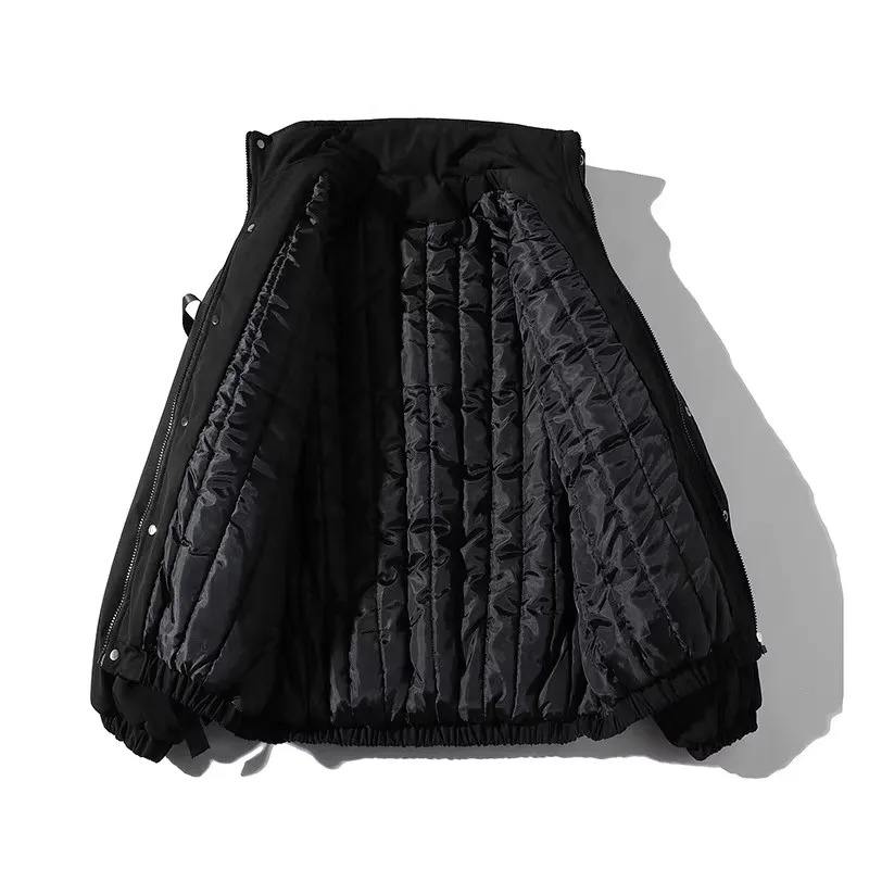 Men's Casual Winter Parka Warm Hooded Puffer Jacket with Stand Collar Thick Canvas Fabric Long Length Winter Coat Outwear