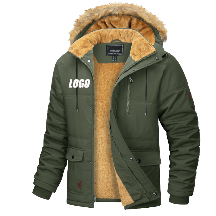 Men's Casual Winter Puffer Jacket with Biker Hood Canvas Fabric Waterproof & Windproof Custom Logo Front Position Wholesale