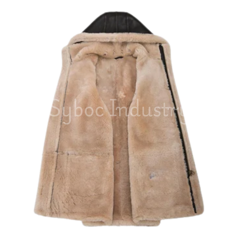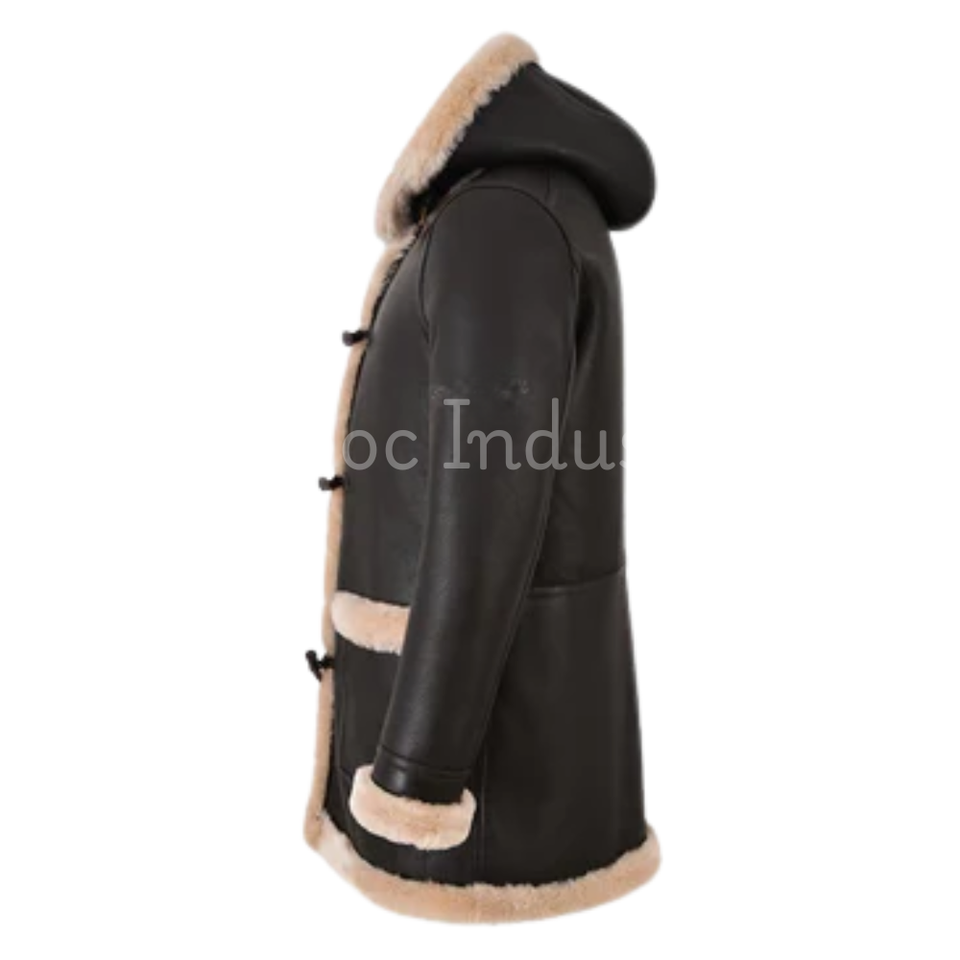 B3 Shearling Leather Jacket Genuine Sheep Hide Leather Parka Coat With Detachable Faux Fur Hood Winter Warm Leather Jacket Boys