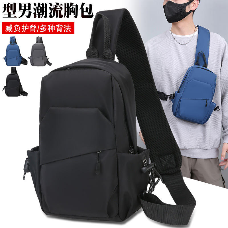 Men's Chest Bag Oxford Cloth Blue Gray Black Comfortable Everyday Use Crossbody Shoulder Bag Spring 2025