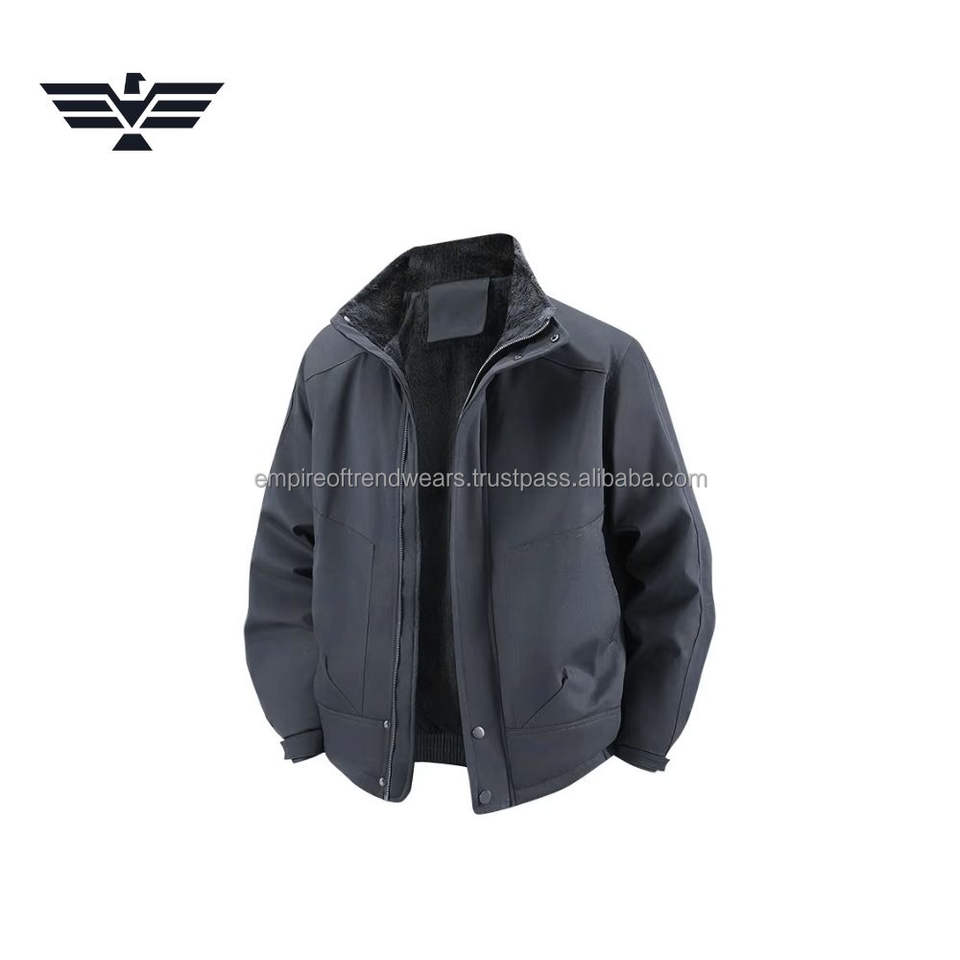 Men's Classic Solid Pattern Fleece-Lined Utility Jacket Embroidered Stand Covered Button Front Breathable Warm Winter Outdoor