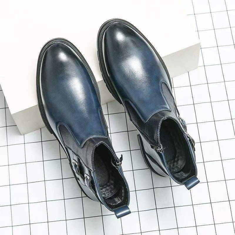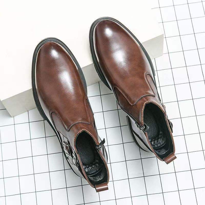 Men's Classy Leather Boot Fashion Big Size High Top English Double Buckle Slip-On New Short Ankle & Bootie