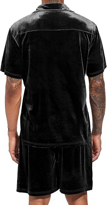Men's Clothing Buttons Down Fitness Velvet Short Set Sportswear Regular Fit Plain Velour Tracksuit Sweat Suits Adults Breathable