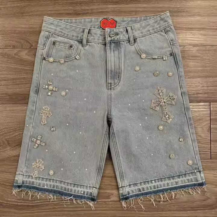 Men's Clothing Jeans Denim Short Fashion Summer Jeans Short Pants Diamond Denim Casual Shorts for Women / Men Denim Men's Shorts
