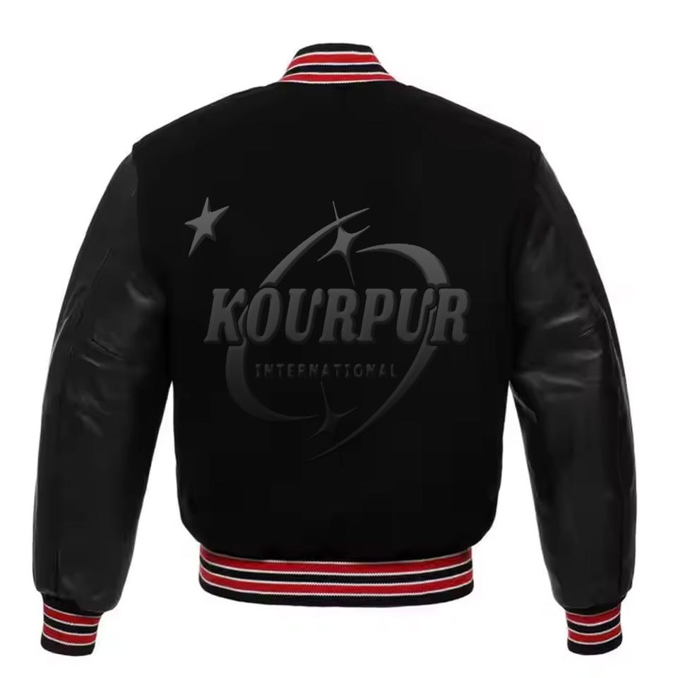 Men's College Baseball Jacket Custom Logo Varsity Style Leather Sleeves Embroidery Stand Black Letterman Jacket for Couples