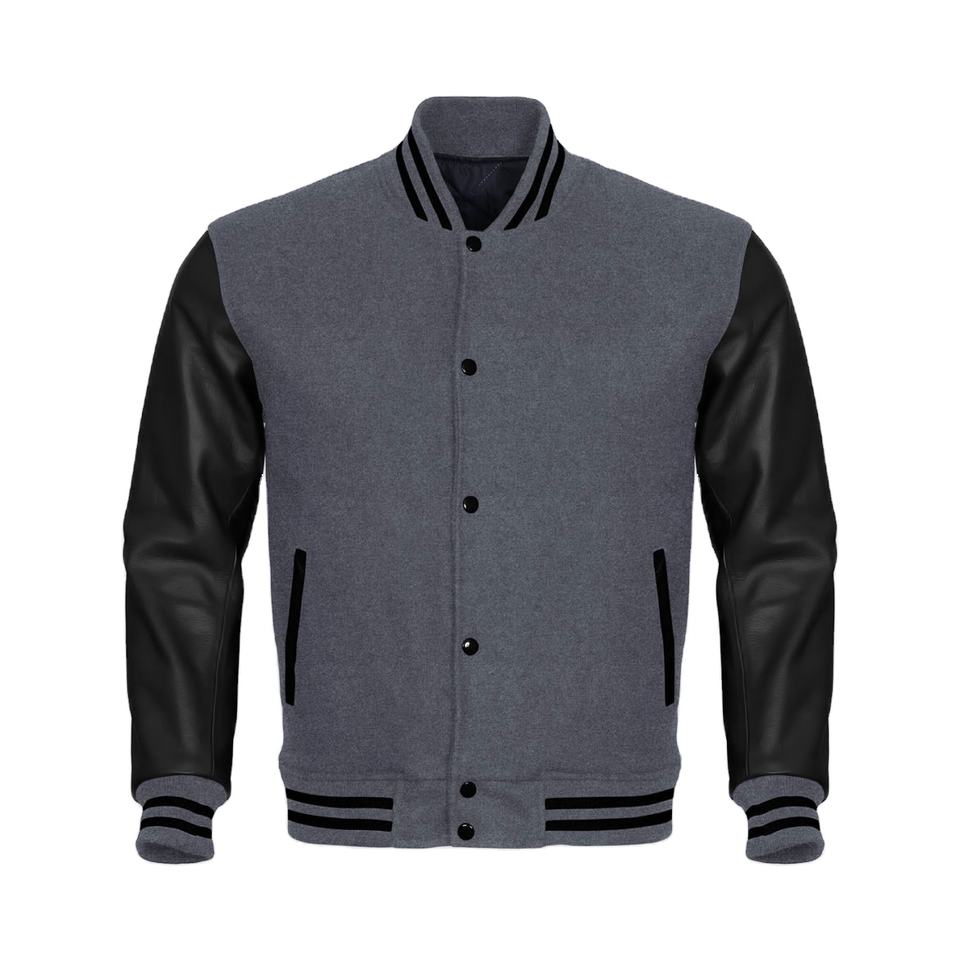 Men's College Letterman Varsity Jacket with Stand Collar Genuine Wool Body and Leather Arms Stylish Letterman Coat