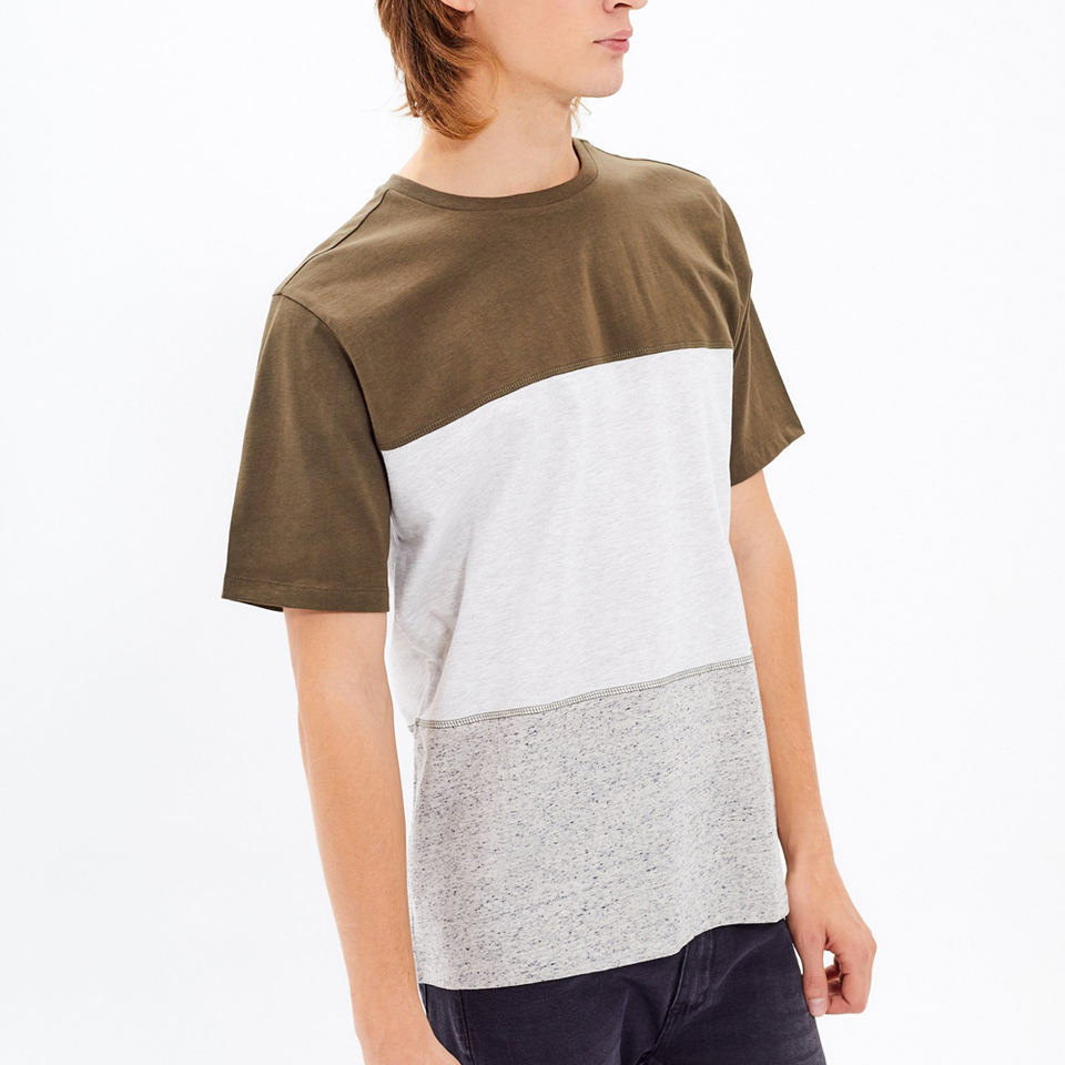 Men's Color Block Half Sleeve High Low Casual Loose T-Shirt Tops Color-Block T Shirts