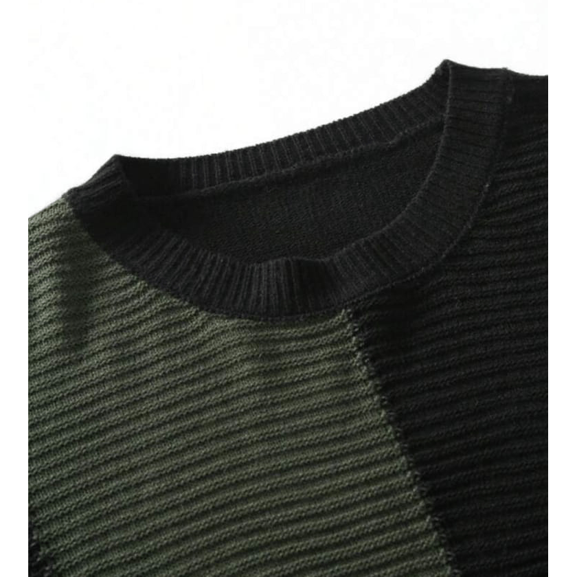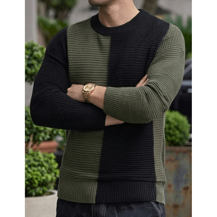 Men’s Color Block Ribbed Knit Sweater (Slim Fit Crew Neck Pullover)