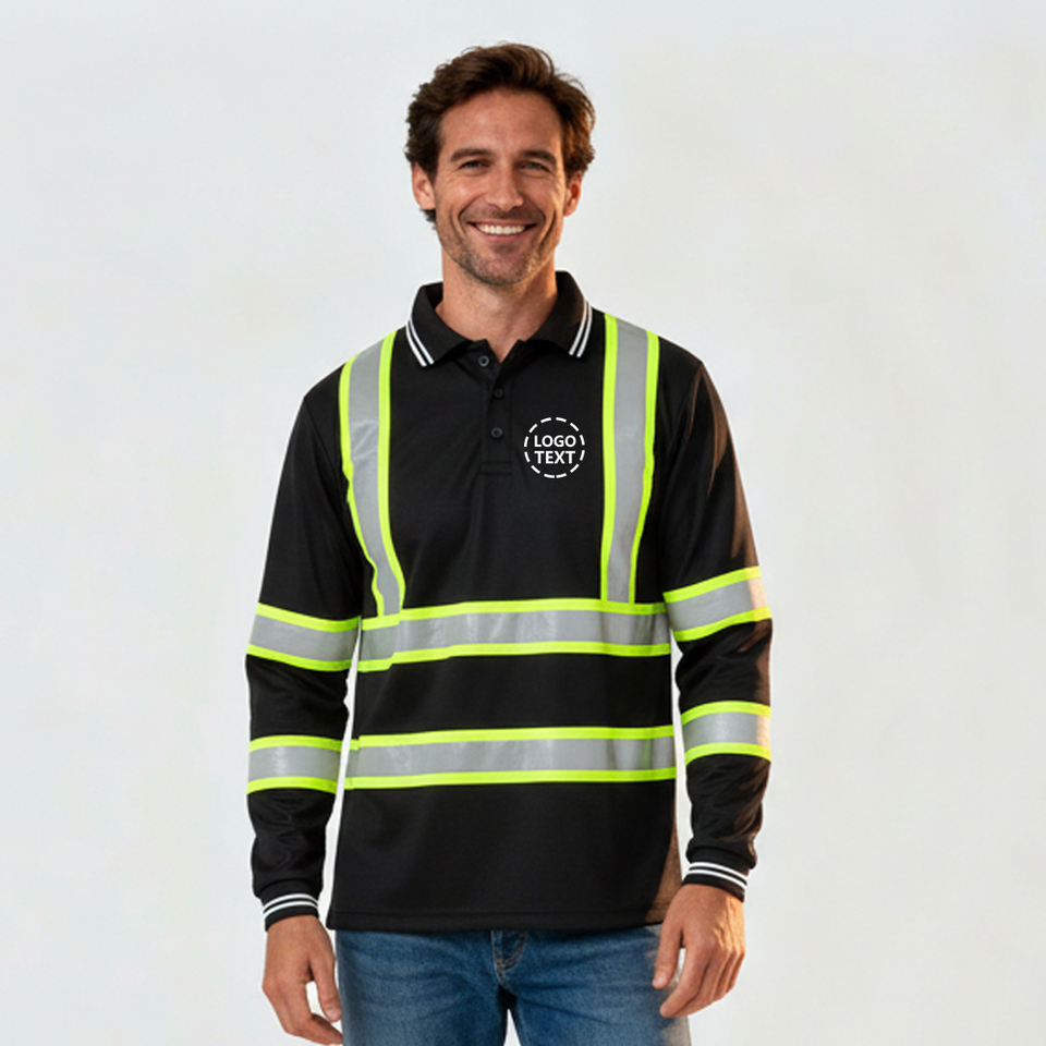 Men's Construction Short Sleeve Reflective HI Vis Safety Shirt 100% Cotton Quick Drying Solid Jersey Customized Logo Button High