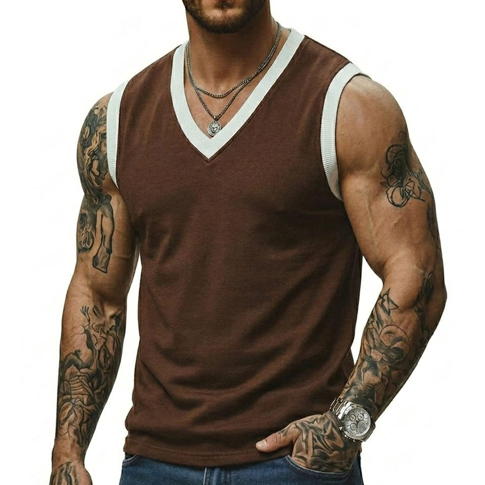 Men's Contrast Ribbed V Neck Muscle Fit Tank Top Stylish Casual Sleeveless Vest Wholesale Customizable Colors Tank Tops For Men