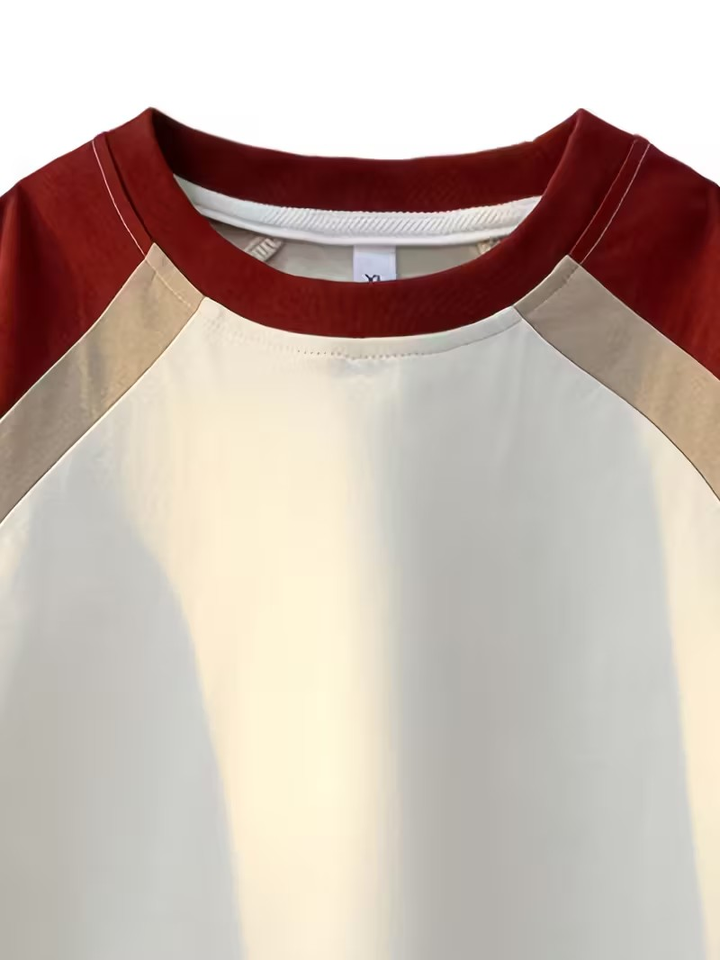 Men's Contrast T-Shirt White Maroon Two-Tone Casual Crewneck Loose Fit Raglan Long Sleeve Enzyme Wash Quick Dry Anti-Wrinkle