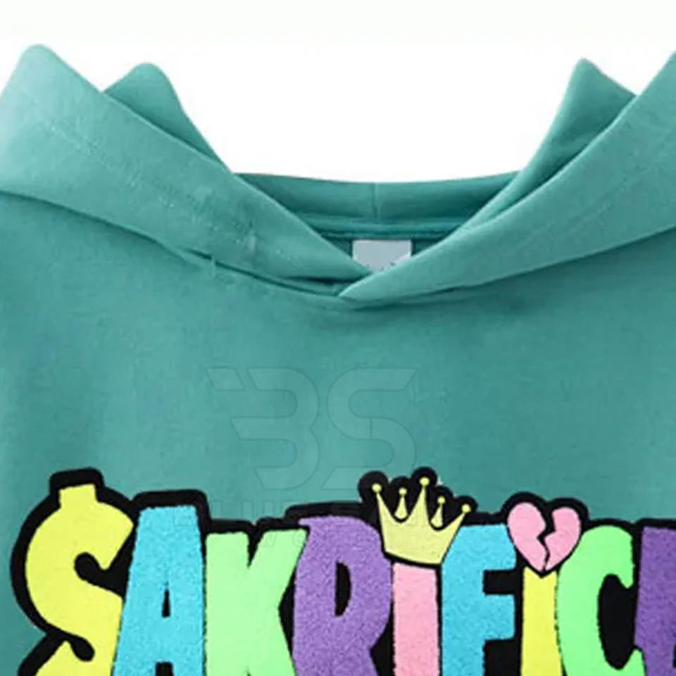 Men's Cotton Pullover Sweatshirt Vintage Printing Embroidery Beach Street Style Hoodie with Pocket