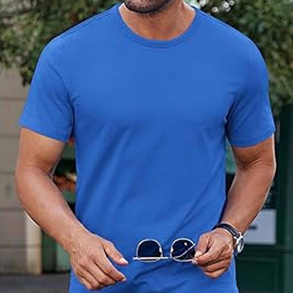 Men's Cotton Regular-Fit Short-Sleeve Crewneck T-Shirt Adult Tri-Blend Track T-Shirt