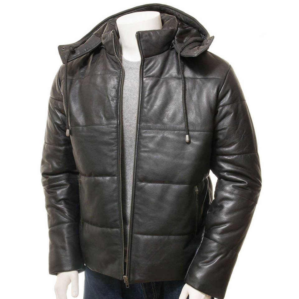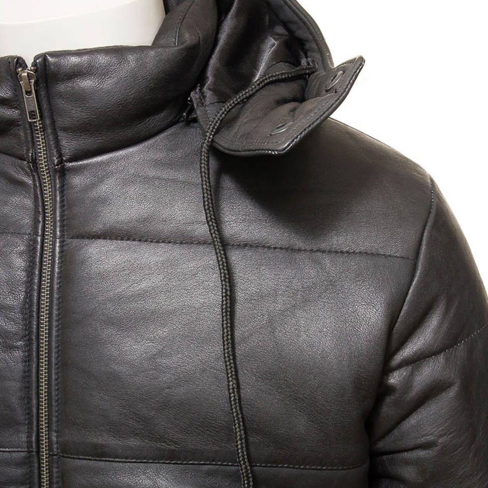 Men's Cow Skin Leather Puffer Jacket Warm Thick Winter Outerwear Fashion Streetwear Insulated Cowhide Padding Coat for Men