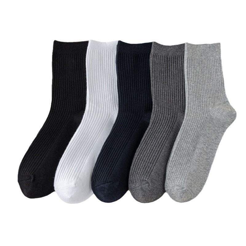 Men's Crew Socks Solid Color Vertical Stripes Sweat Absorbent Breathable Odor Control Casual Business Socks