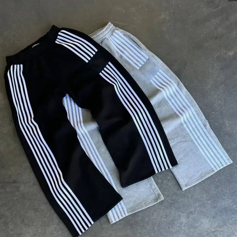 Men's Curved Striped Straight Knit Sweatpants Loose Straight Leg Track Pants Baggy Jogger 100% Cotton Striped Side Pants