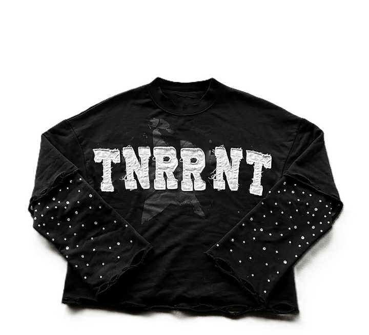 Men's Custom 100% Cotton Hip Hop Canvas Rhinestone Distressed Embroidered Acid Wash Long Sleeve Double Layered Oversized