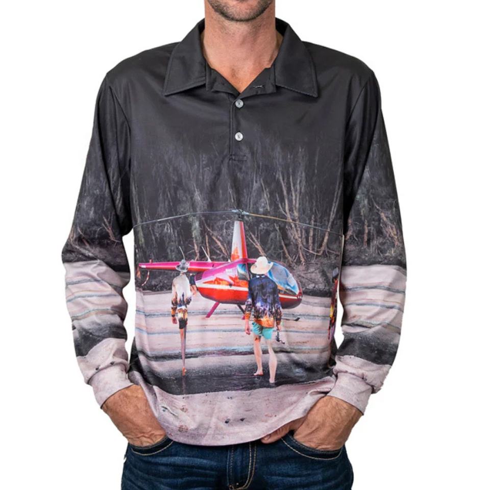 Men's Custom Black Long Sleeve UV Protection for Polo Shirts Knitted Sportswear Camouflage for Fishing Sublimation Digital Print