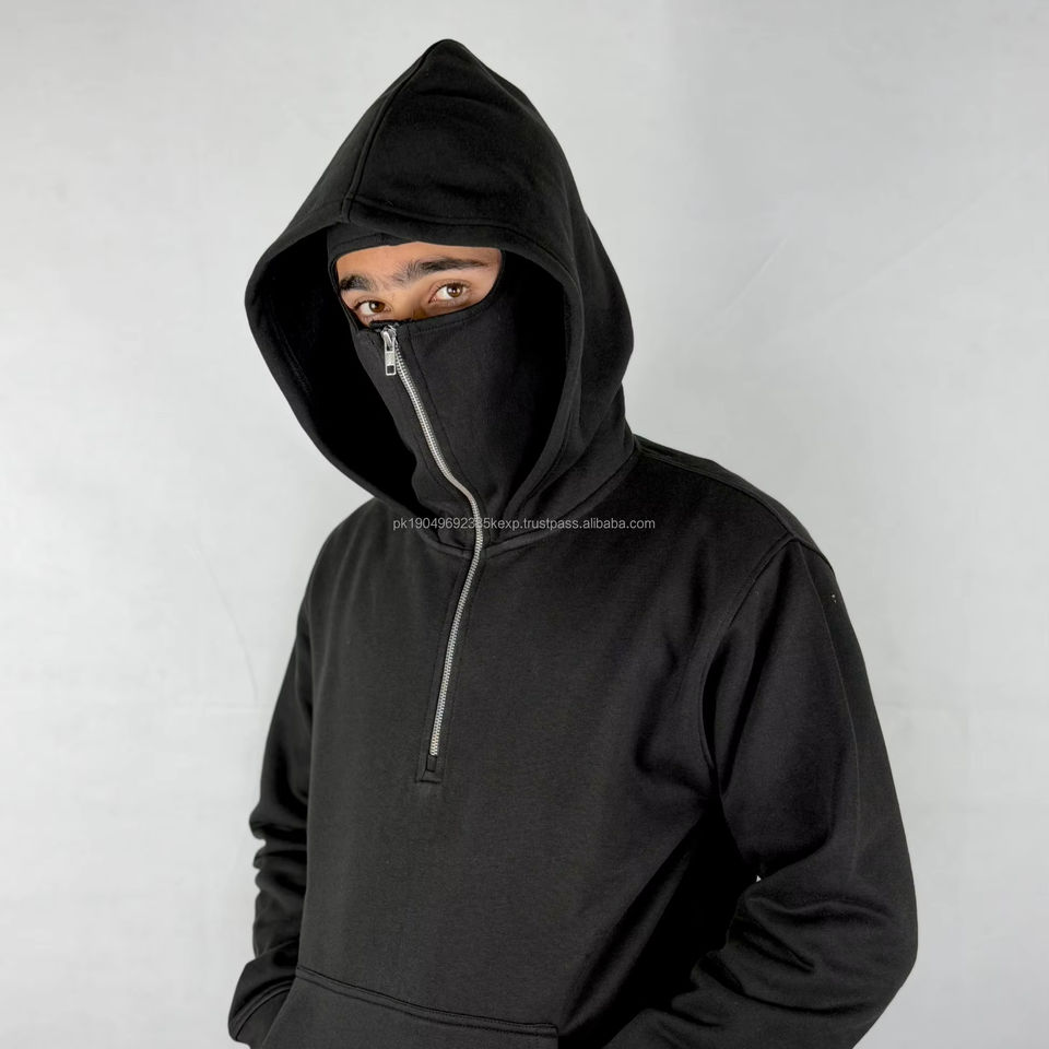 Men's Custom Designed Gangster Printing Double Layer Ninja French Terry Acid Wash Full Zip Balaclava Hoodie Heavyweight