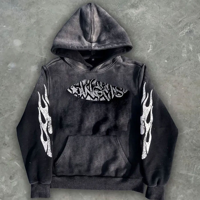 Men's Custom Distressed Embroidery Patch Tracksuits Street Wear Acid Wash Sweatpants And Hoodie Tracksuit Set For Men
