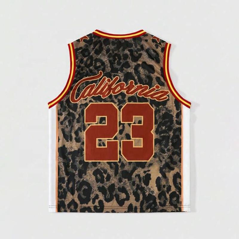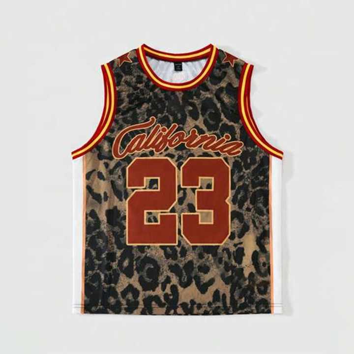 Men's Custom Leopard Print Sleeveless Basketball Jersey Plus Size Anti-Odor Mesh Fabric Breathable Anti-Bacterial