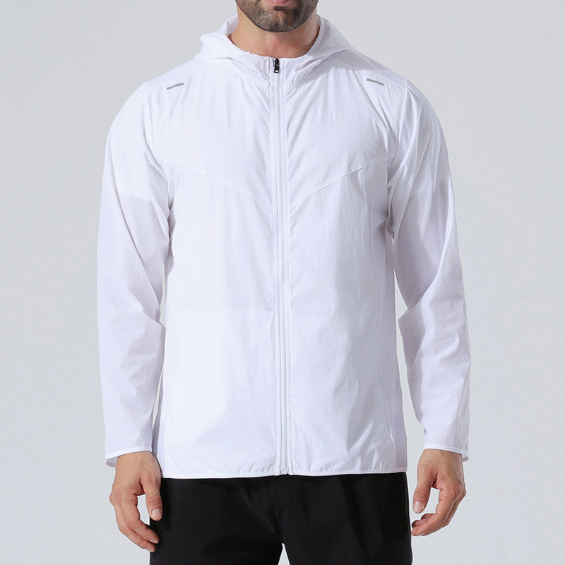 Men's Custom Lightweight Performance Jacket Hooded Full Zip Reflective Running Coat Windproof Athletic Training Outerwear