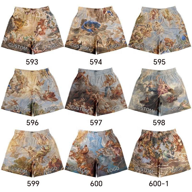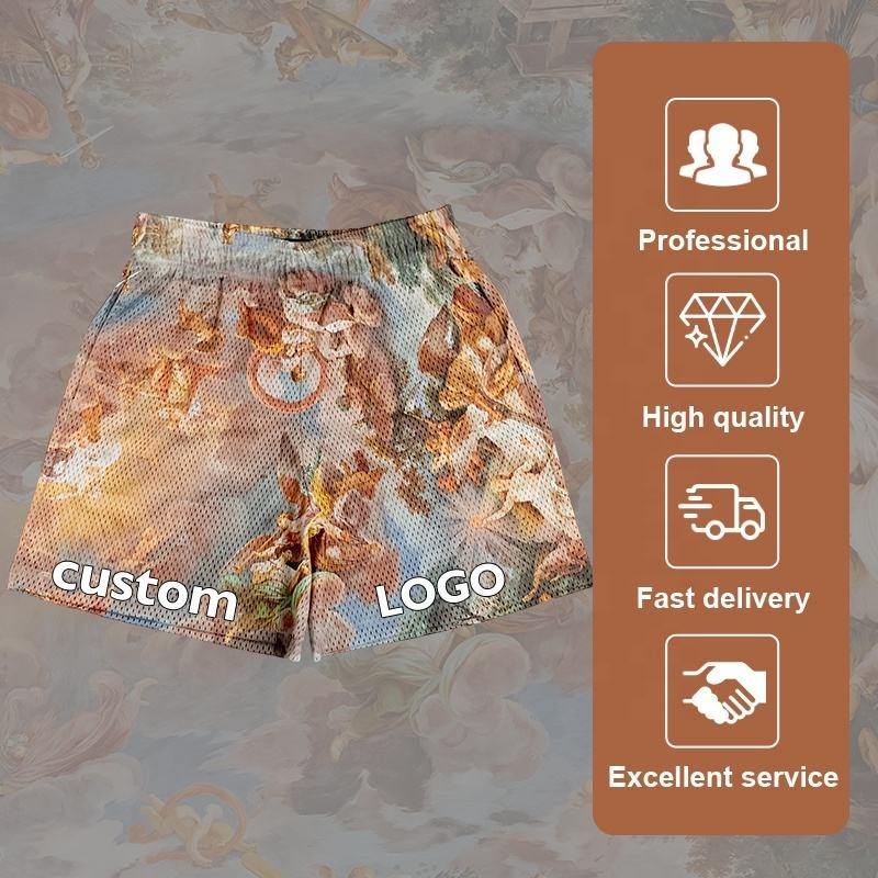 Men's Custom Logo Double Layer Polyester Fitness Shorts Quick Drying Summer Oil Painting Solid Pattern High Quality Mesh Shorts